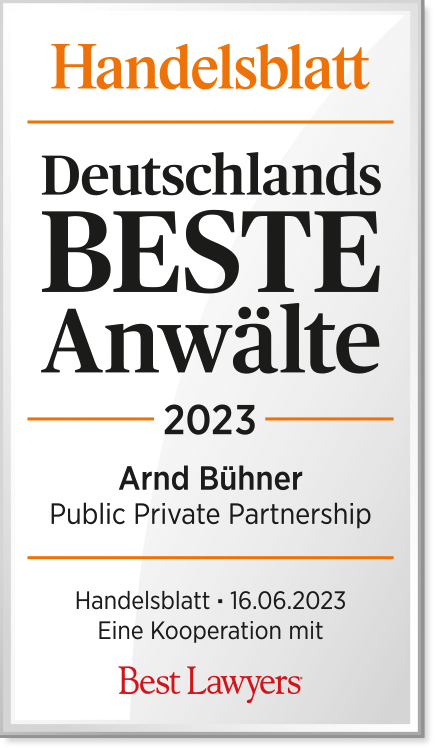 Diese Auszeichnung bezieht sich auf seine besonderen Kenntnisse und Erfahrungen im Bereich Public Private Partnership und gilt für den Freistaat Bayern. Arnd Bühner erhält diese Auszeichnung bereits zum vierten Mal in Folge.